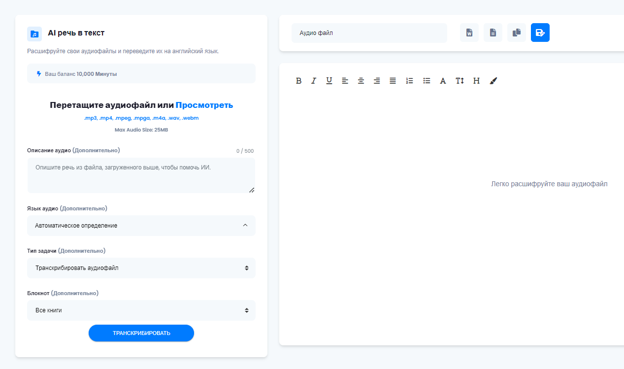 Мы позаботимся обо всех аспектах создания текстовых и аудиоматериалов AI, чтобы вы могли сосредоточиться только на создании контента.